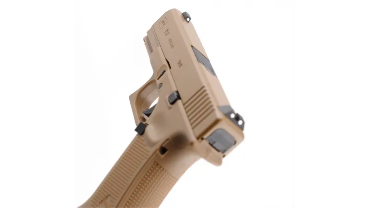 Fully licensed by Glock, this G19X replica from Umarex is another example of the airgun producer’s attention to detail, quality craftsmanship and realism. It’s based directly on what Glock calls its first “crossover pistol,” combining a full-sized, Glock 17 frame with a compact, Glock 19 slide. It’s finished in a striking monochrome coyote tan colorway, just like its centerfire inspiration, which incorporates Glock’s first factory-colored slide.