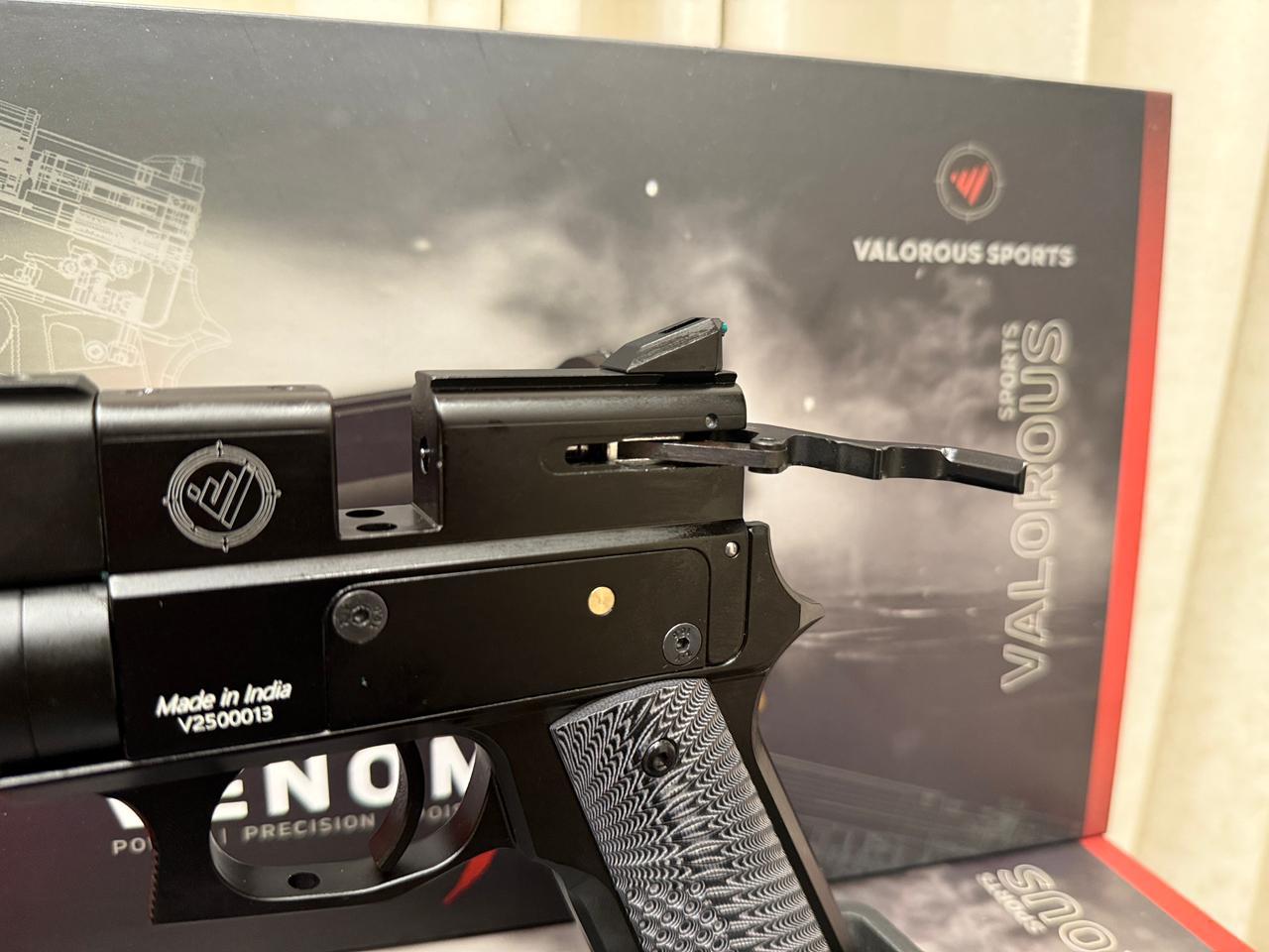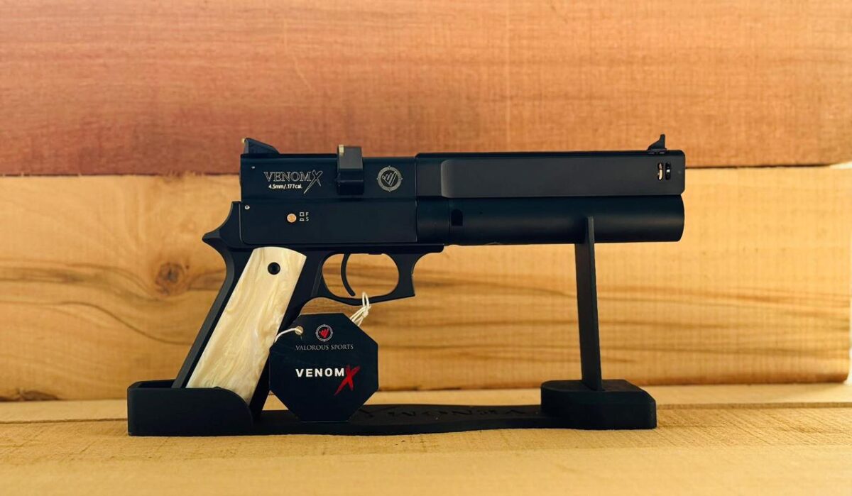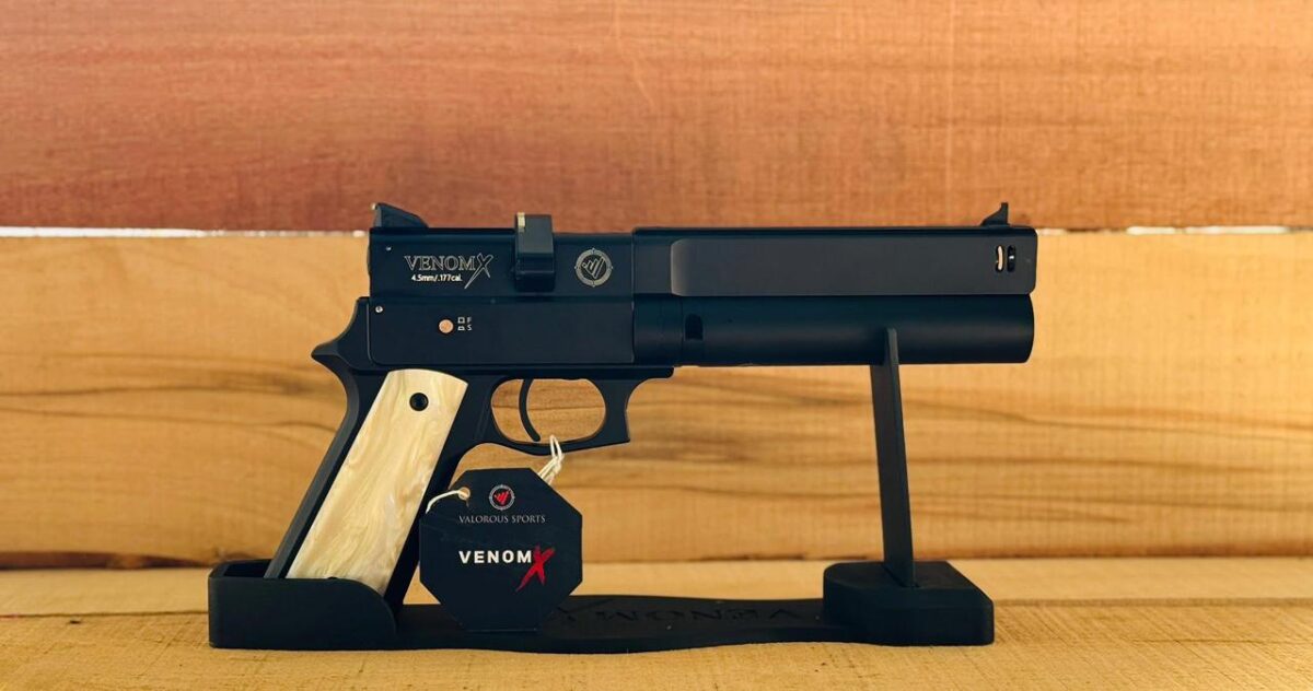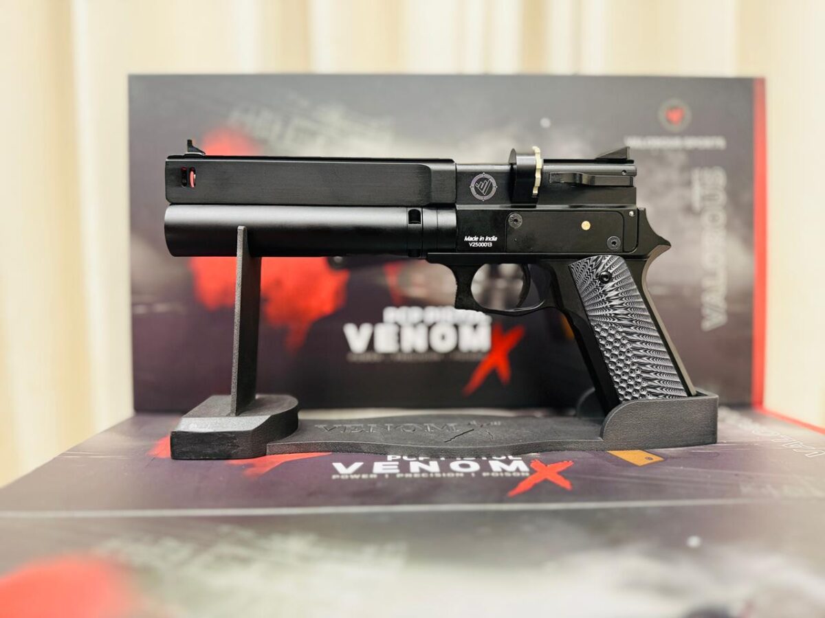 Venom-X is a Pre-charged pneumatic (PCP) air pistol manufactured by the Indian company Valorous Sports Pvt Ltd. It is chambered in the .177 caliber and was announced for launch in 2025. The pistol is intended for target shooting and Plinking and does not require a license in India.