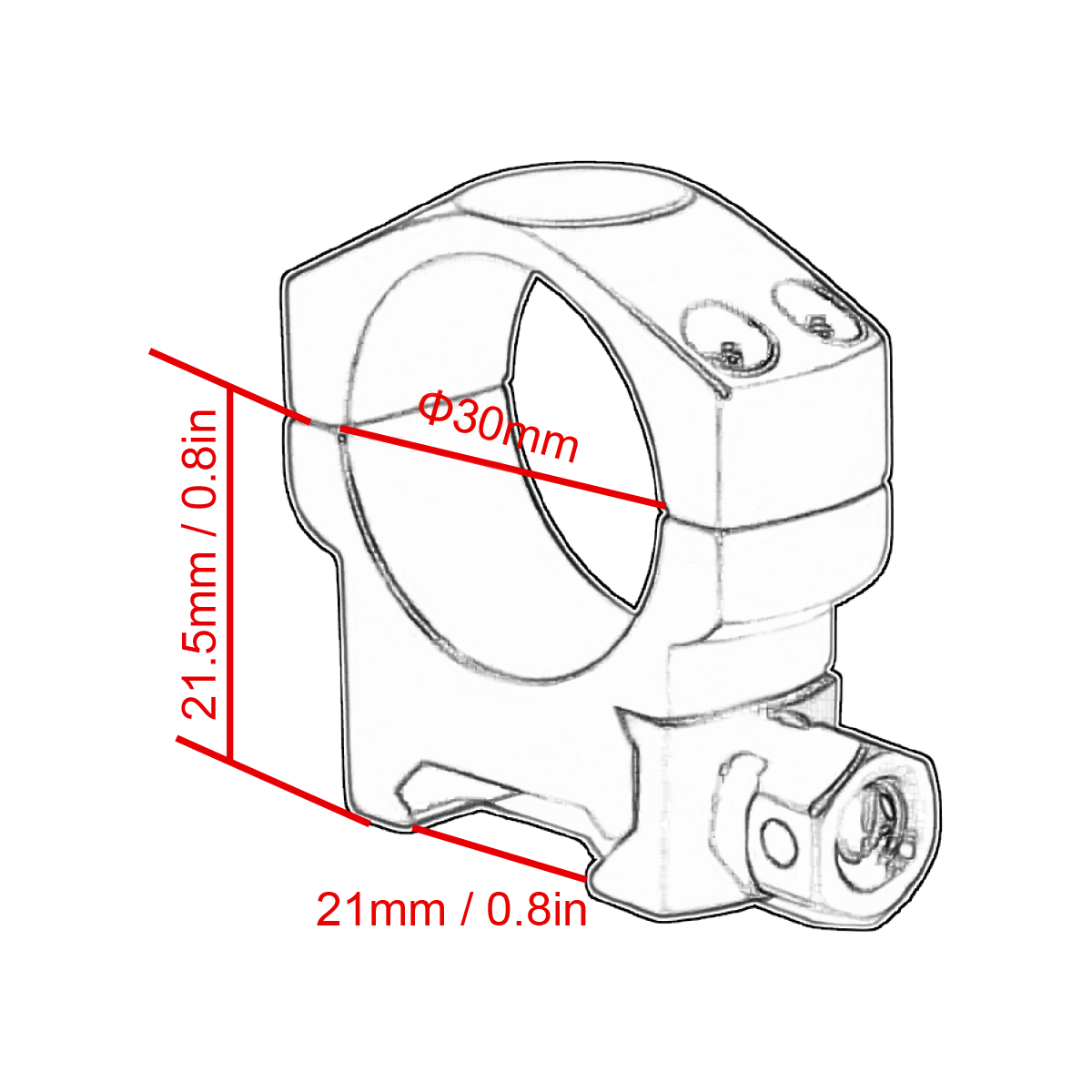 - 30mm Diameter, Low Profile 0.9 inch from Base to Ring Center, 4 Screws per Ring, CNC Made