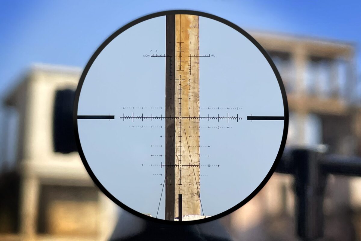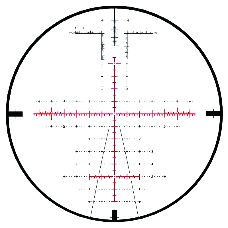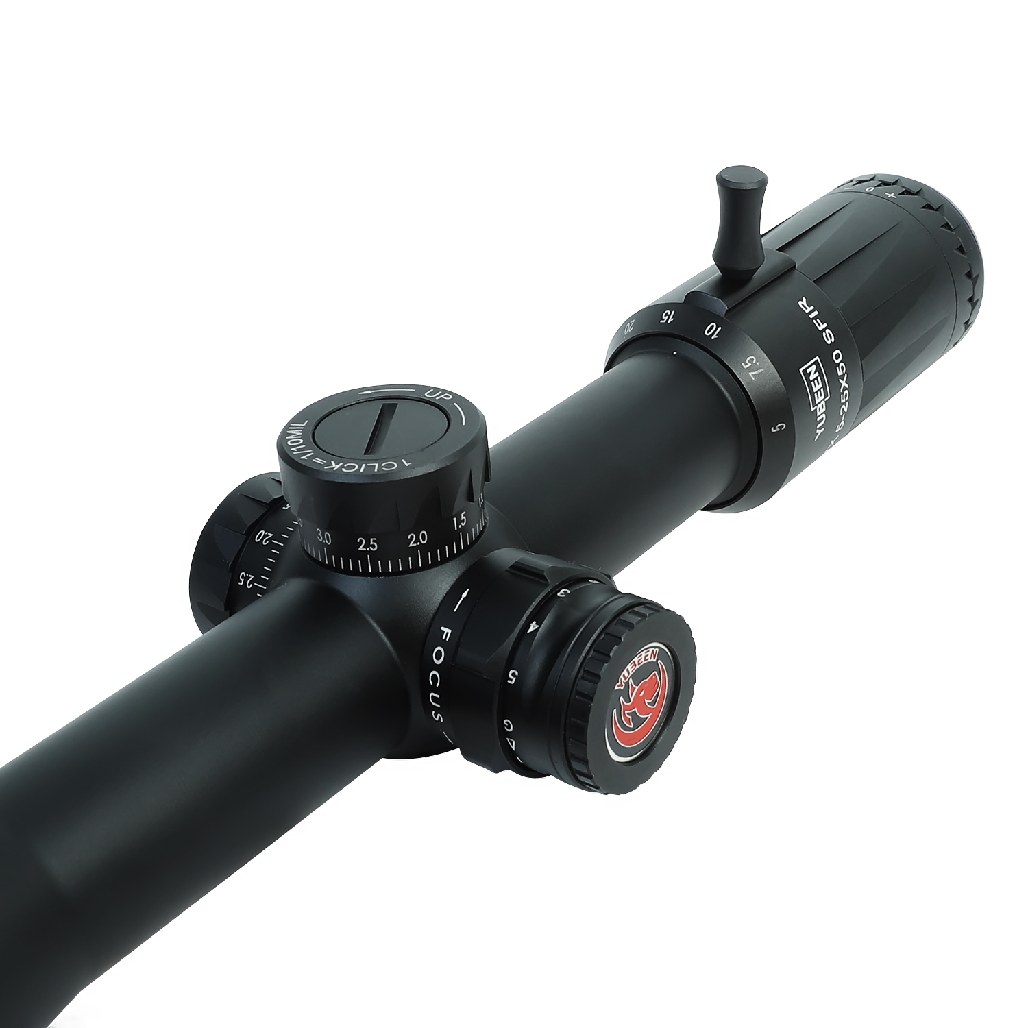 The display of the product reticle is made of etched glass with high light transmittance. SFP illuminated reticle with two colors (R,G) and five levels of brightness adjustment provides a reference point throughout the zoom range.