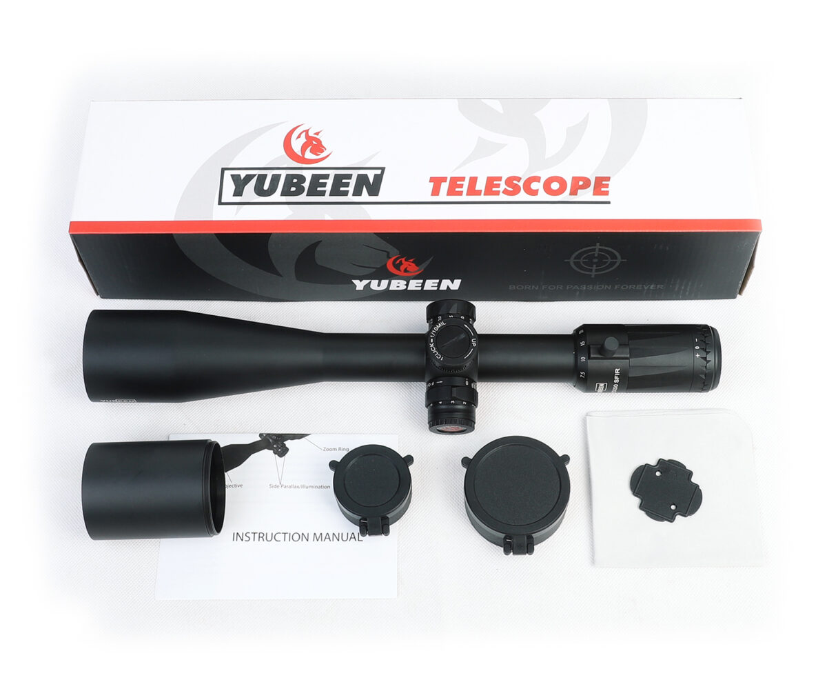 YUBEEN 4-20x zoom for versatility in close-range and long-range shooting. A large 50mm objective lens gathers ample light during magnification. 30mm tube for rugged construction. SFP illuminated reticle with two colors (R,G) and five levels of brightness adjustment provides a reference point throughout the zoom range. High-quality aircraft-grade aluminum housing makes it more shock-resistant and can be used in extreme conditions. “HD” lens provides a bright, clear and color-corrected view. Fully multi-coated lenses maximize light transmission. Stretch lock: effectively prevents misoperation from changing the aiming setting, improving the convenience and accuracy of using the scope. Waterproof, fog-proof and impact-resistant.